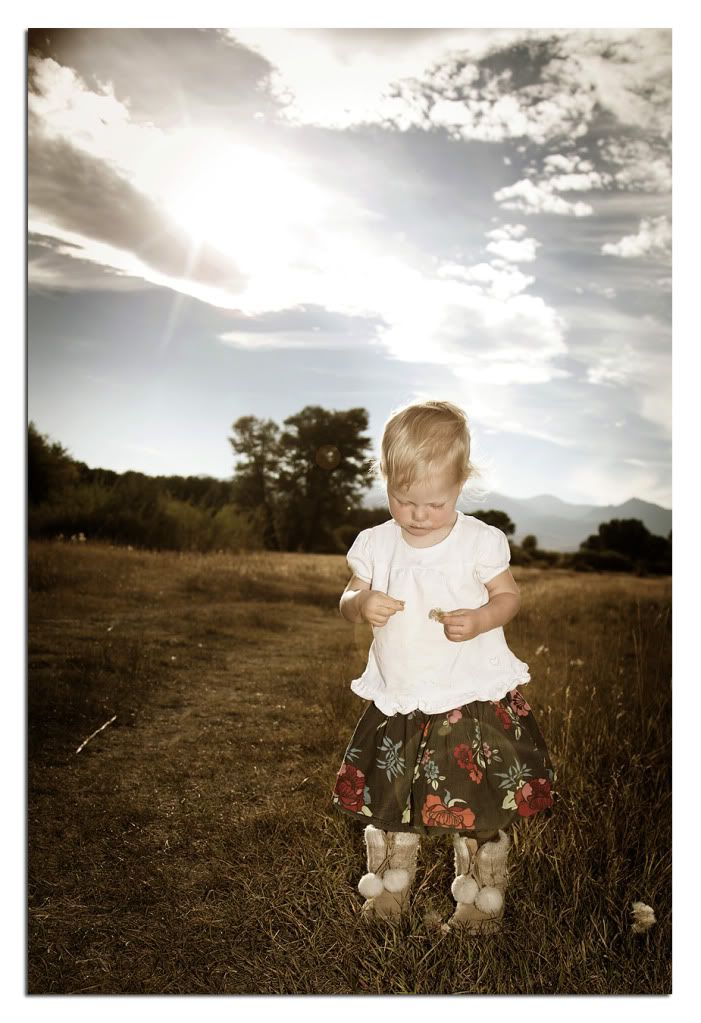 We went home to Mackay Idaho this past weekend and spent some time with a couple of my sisters. My niece runs in suddenly and tells me that I just have to come see right away. So I run out there and see my little sweet daughter walking down the beaten path with the neighbors dog. The light was perfect and so lucky I had camera in hand and started shooting away. She was dirty from camping and hair was a mess but oh so cute. She loves to pick and blow the dandilions so of course she found some of those along the way. Oh I just wish they would stay little just a little longer (sigh)